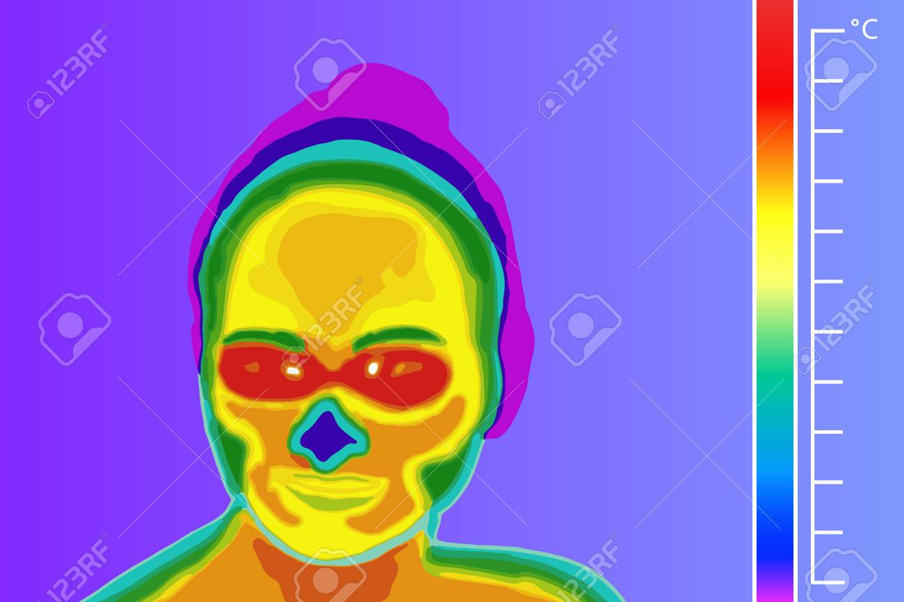 Thermal Imager Medical Scan Human Head Vector Illustration The Image Of A Men Arm Using Infrared Thermograph Scale Is Degrees Celsius